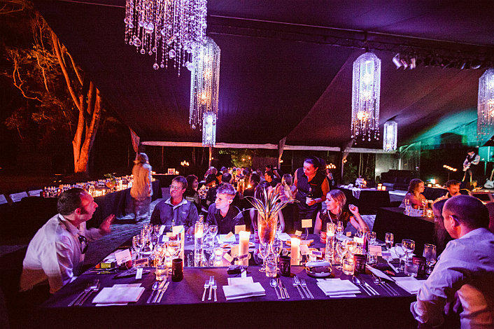 - • Return hotel coach transfers from Port Douglas • Spectacular rainforest setting • Six course plated tasting menu seated under stunning chandelier and candle lit silk marquee • Quality Australian sparkling wine, red and white wine, beer and soft drink • Tables may be booked for two or your group size