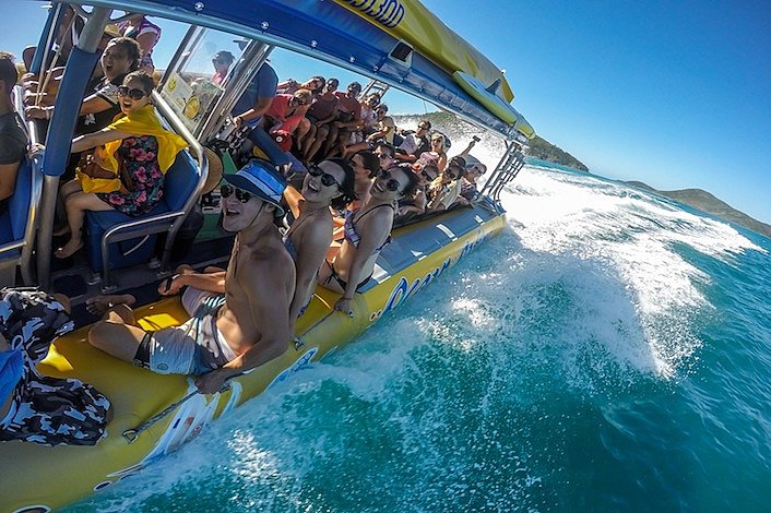 Experience the signature adrenalin fuelled action while exploring the islands, inlets and beaches on custom built semi-rigid inflatable vessels, travelling at speeds of up to 35 knots (65 km/hour). The vessels are up to 12 metre semi-rigid inflatable vessels, originally designed and built as rescue crafts and are driven by 500hp engines, allowing you to experience a fun, high speed ride amongst the natural beauty of the Whitsundays.